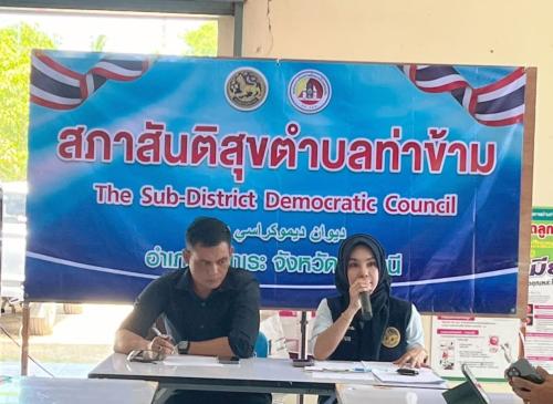วันที่ 10 เมษายน 2569 สำนักงานพัฒนาชุมชนอำเภอปะนาเระ โดยนางสาวปรียานุช มาทน พัฒนาการอำเภอปะนาเระ มอบหมายให้นางสาวจริยา ขวดทอง พัฒนากรผู้ประสานงานตำบลท่าข้าม ร่วมประชุมสภาสันติสุขตำบลท่าข้าม ประจำเดือนเมษายน 2569 เพื่อแจ้งข้อราชการ การดำเนินงานพัฒนาชุมชน ดังนี้